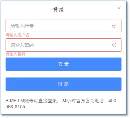 登录 登录BIMFILM账号,未注册可在界面注册后登录 |